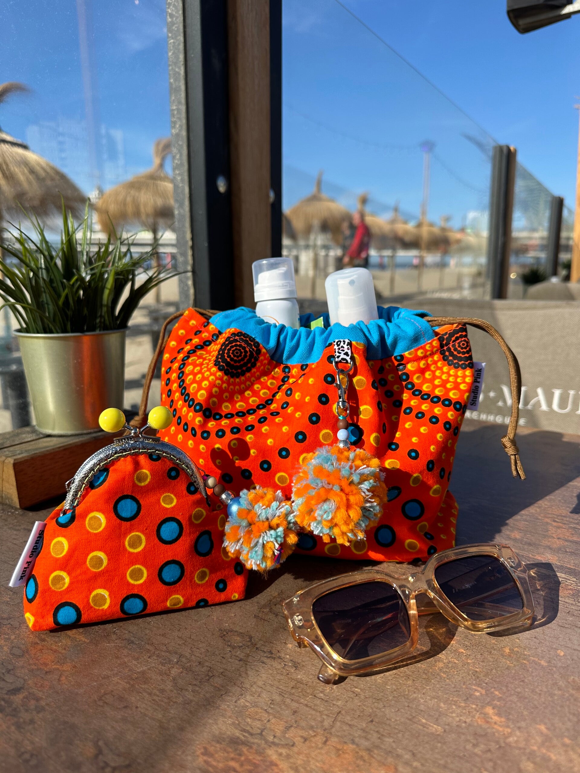 Materiaal: buitenkant Afrikaanse stof 100% katoen. Voering canvas 100% katoen.