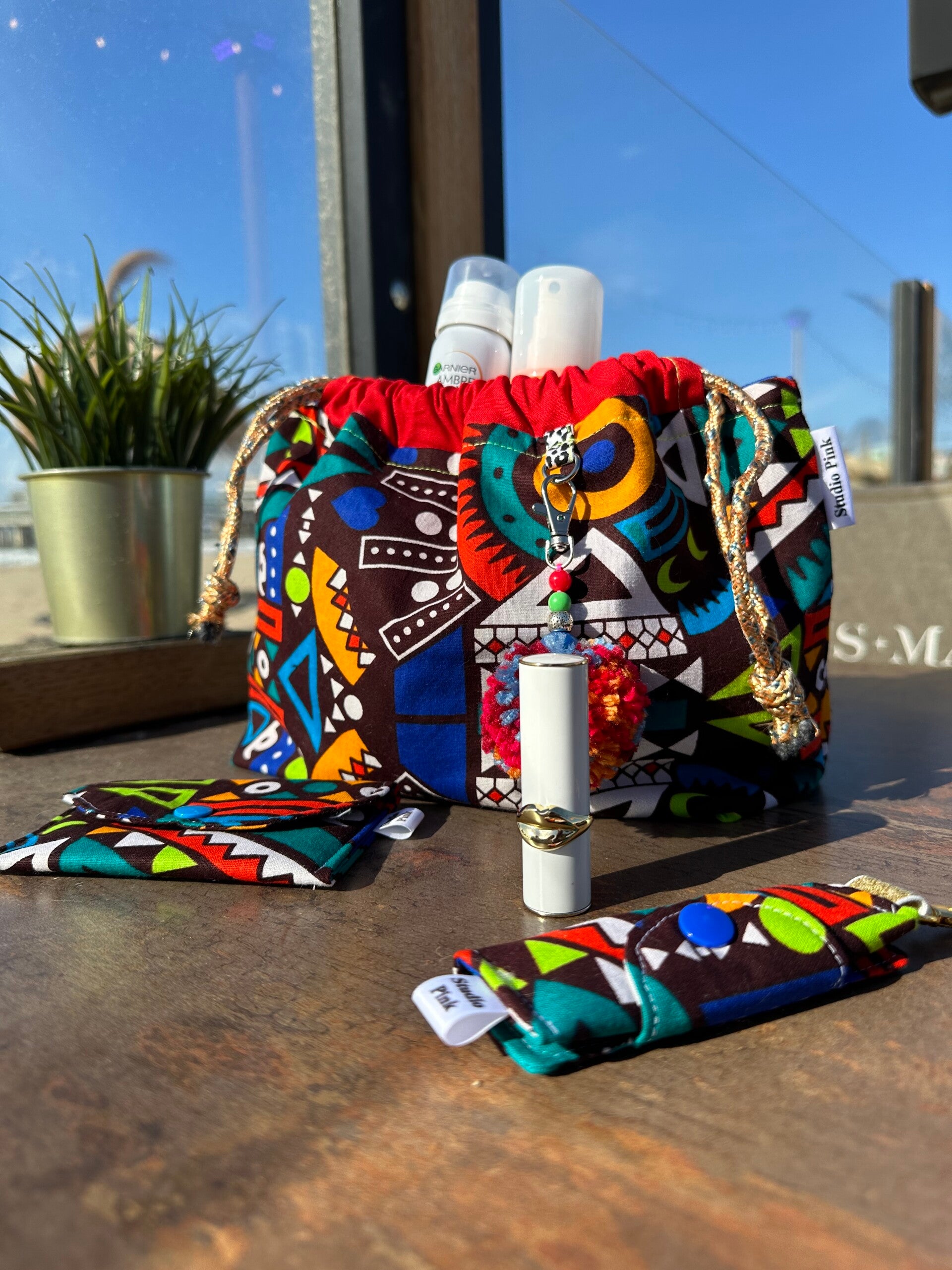 Stap in de wereld van kleur en cultuur met ons prachtige opbergzakje, geïnspireerd door de levendige kleuren van Afrikaanse stoffen. Elke item is uniek en vertelt zijn eigen verhaal. De hanger met een schattige pompon geeft een speels tintje aan het geheel, terwijl het trekkoord zorgt voor gemakkelijke toegang tot je spullen. Voeg een vleugje Afrikaanse flair toe aan je dagelijkse routine met ons opbergzakje - jouw perfecte reisgenoot vol kleur en karakter!