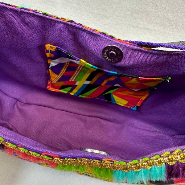 Ontdek onze charmante kleine schoudertas! Een uniek en levendig ontwerp waarmee je je look opfleurt. Compleet met een speelse hanger met handgemaakte pompons. Deze tas sluit handig met een magneetsluiting waardoor je spullen veilig blijven terwijl je onderweg bent. Voeg een vleugje kleur en stijl toe aan je outfit met deze unieke tas.