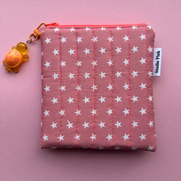Elk etuitje is anders door de samenstelling van de stofjes, de kleur van de rits en het stiksel. Daarnaast zit er aan elk etuitje een hangertje met een katje. De Leftover Love-collectie van Studio Pink is gevuld met unieke etui’s en toilettassen. Allemaal handgemaakt en one of a kind.