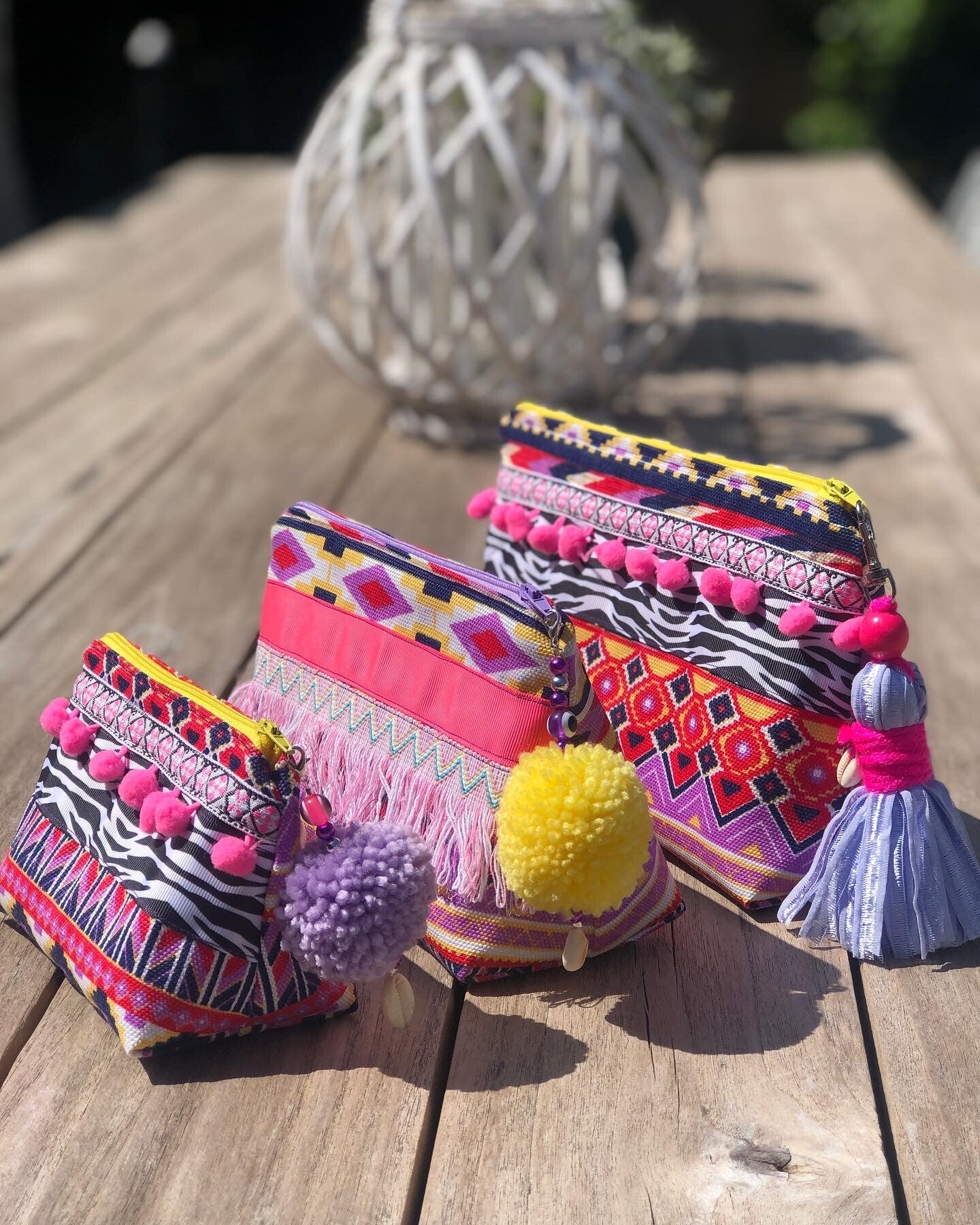 Ontdek onze prachtige toilettassen! Gemaakt van duurzaam canvas en versierd met mooi band en/of applicatie. De binnenkant is gevoerd met een kleurrijke en hoogwaardige stof. Compleet met een handgemaakte hanger aan de rits.